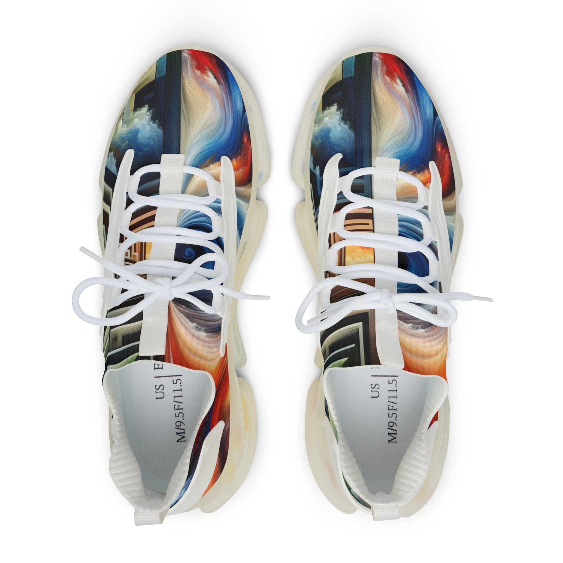 #AbstractArt #ChaosAndSerenity #MeshSneakers #Athleisure #FootwearArt #CoolComfort #ArtisticFashion #WalkingGallery #StatementSneakers #BridgingContrasts
