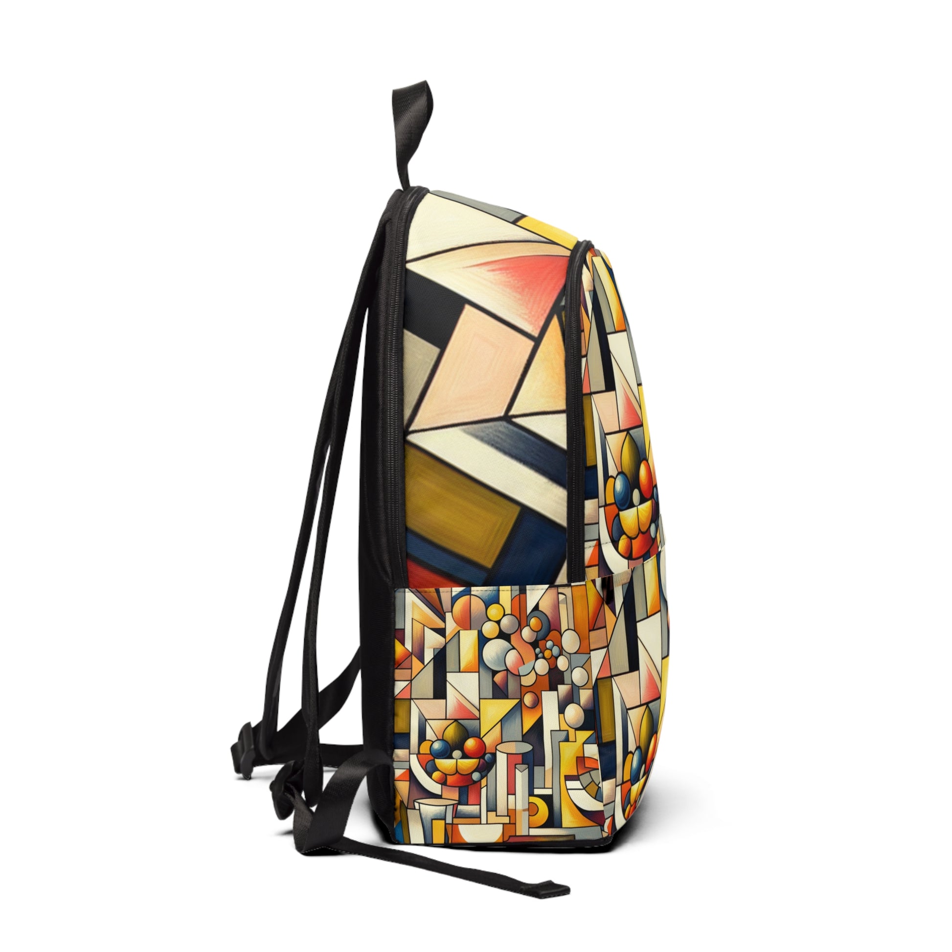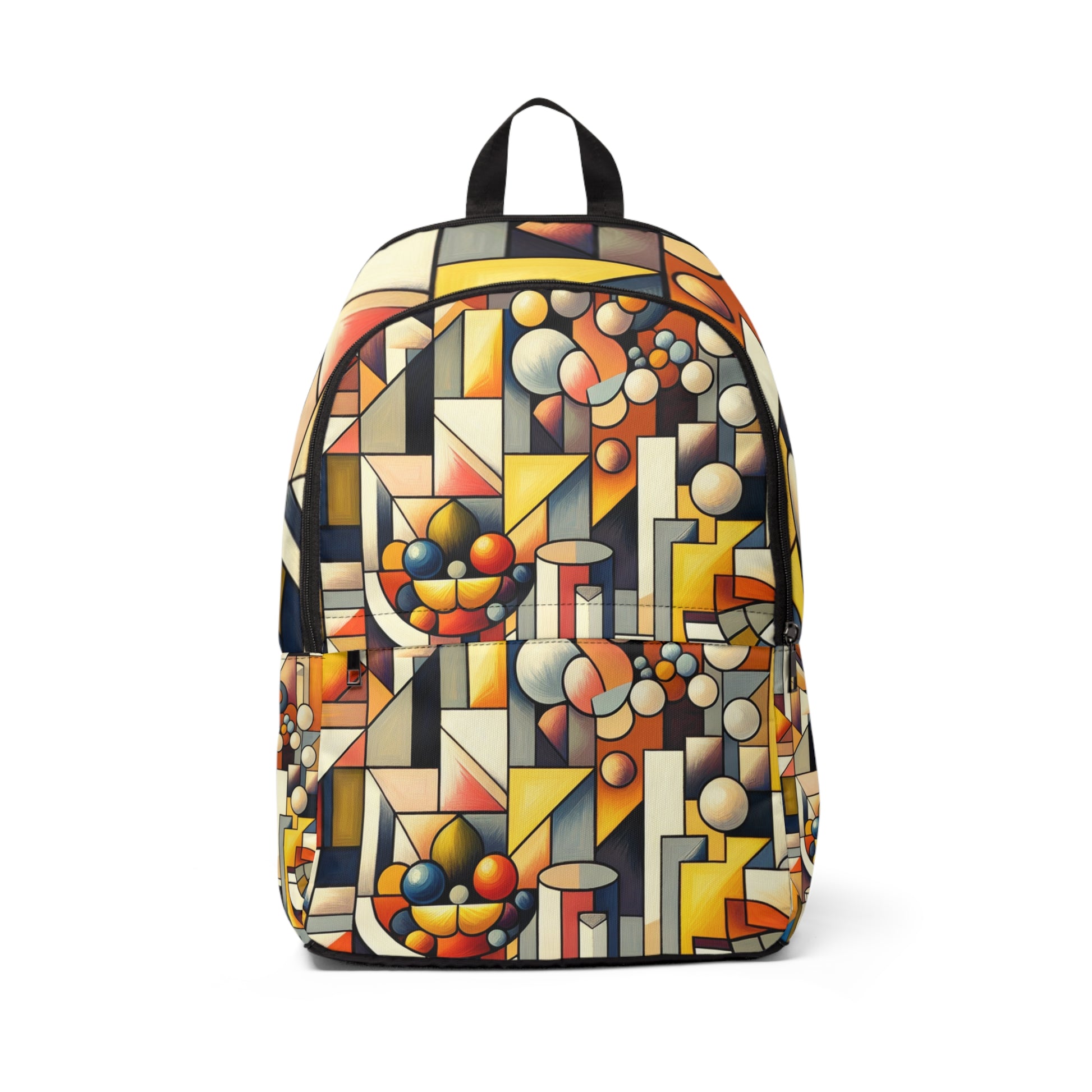 Unleash your artistic flair with our Cubism-inspired backpack! Rendered in oils, it's a gallery of geometric shapes playing with multiple viewpoints. Discover abstract fruits and vases on a neutral underlay, punctuated with unexpected hues. A visual symphony of shifting perspectives, without referencing a certain artist. | Digital Design #BackpackArt #CubismCool #FashionGallery #GeometricGenius #AbstractAccessory #UnexpectedHues #ShiftingPerspectives #ArtAndFashionBlend #NeutralElegance #CanvasCarryall.