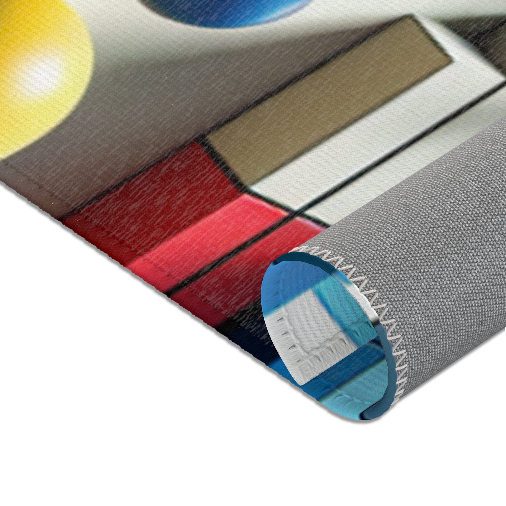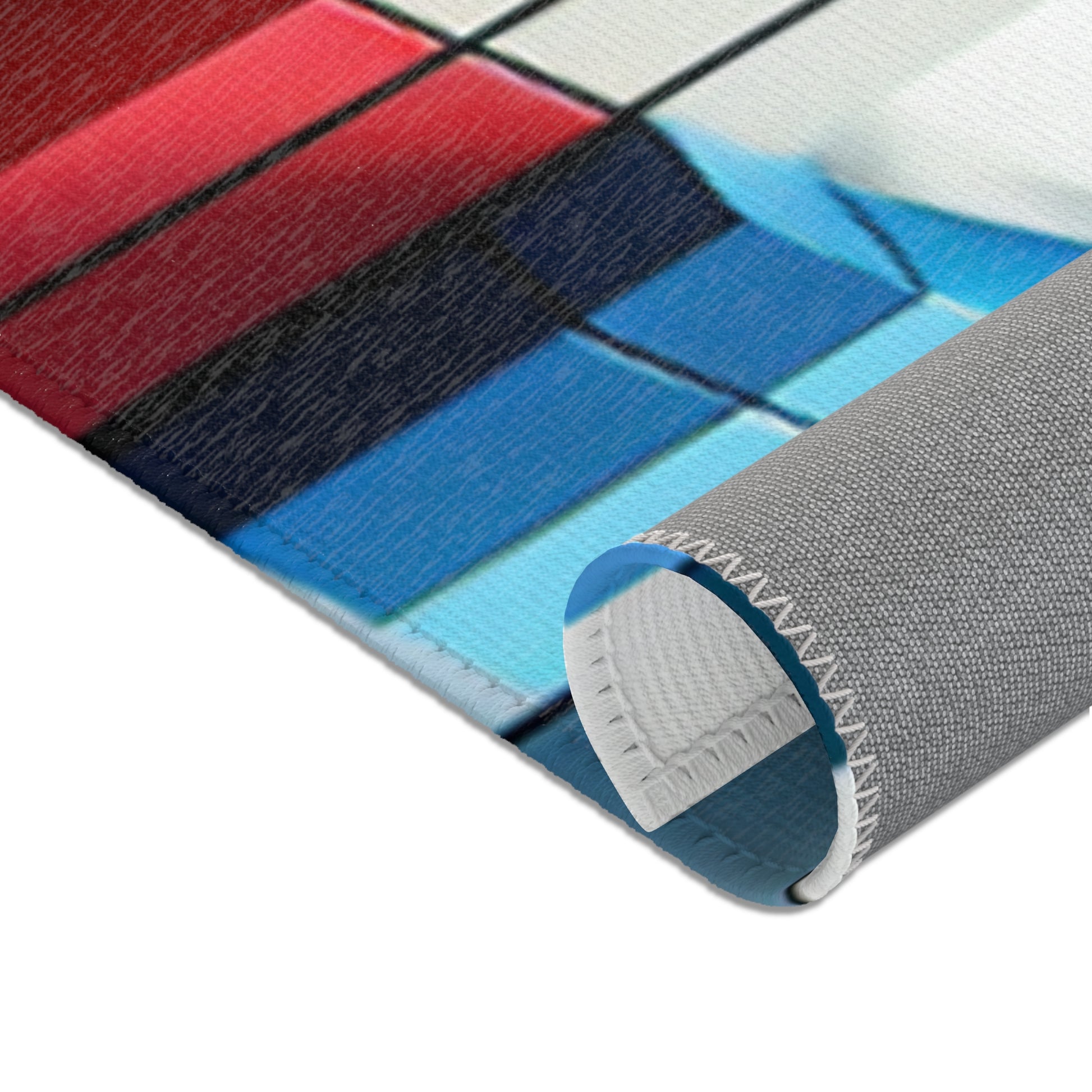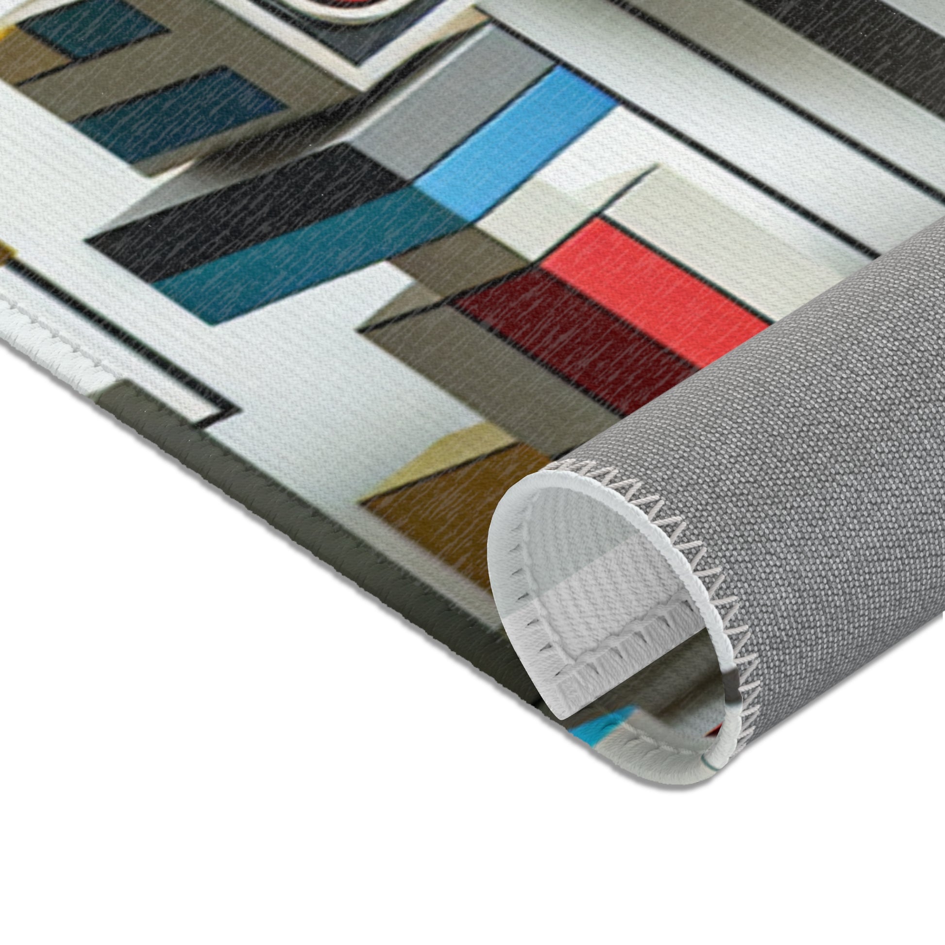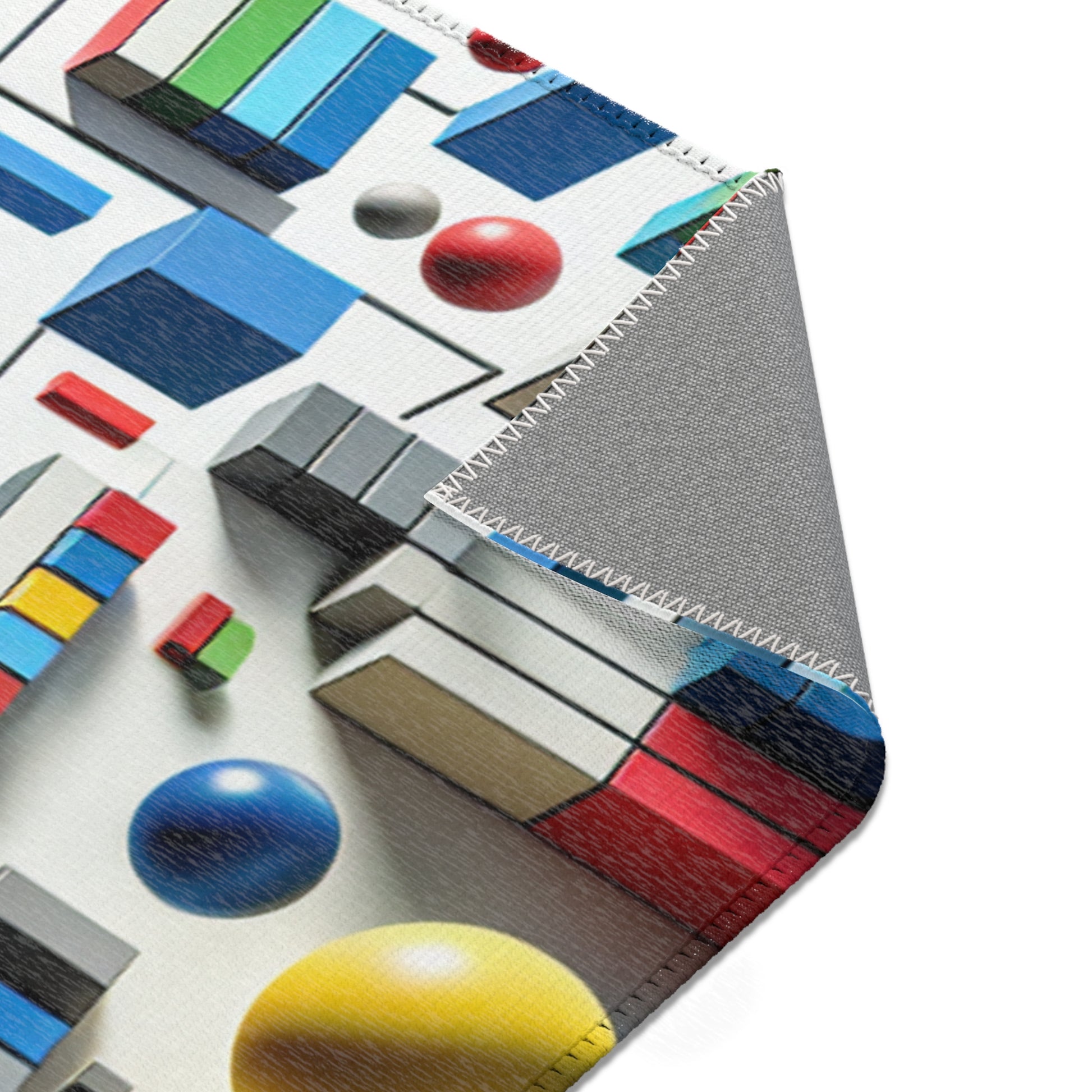 Immerse in vivid art with our abstract geometric area rug! Crafted with vibrant shades of red, blue, green, yellow on a stark white canvas, this rug showcases distinctive shapes like circles, squares, rectangles, each in perfect harmony. Revel in artful sophistication with every step! | Digital Design #AreaRug #HomeDecor #Colorful #Geometric #AbstractArt #Vibrant #Contemporary #LuxuryRugs #InteriorDesign #StyleStatement