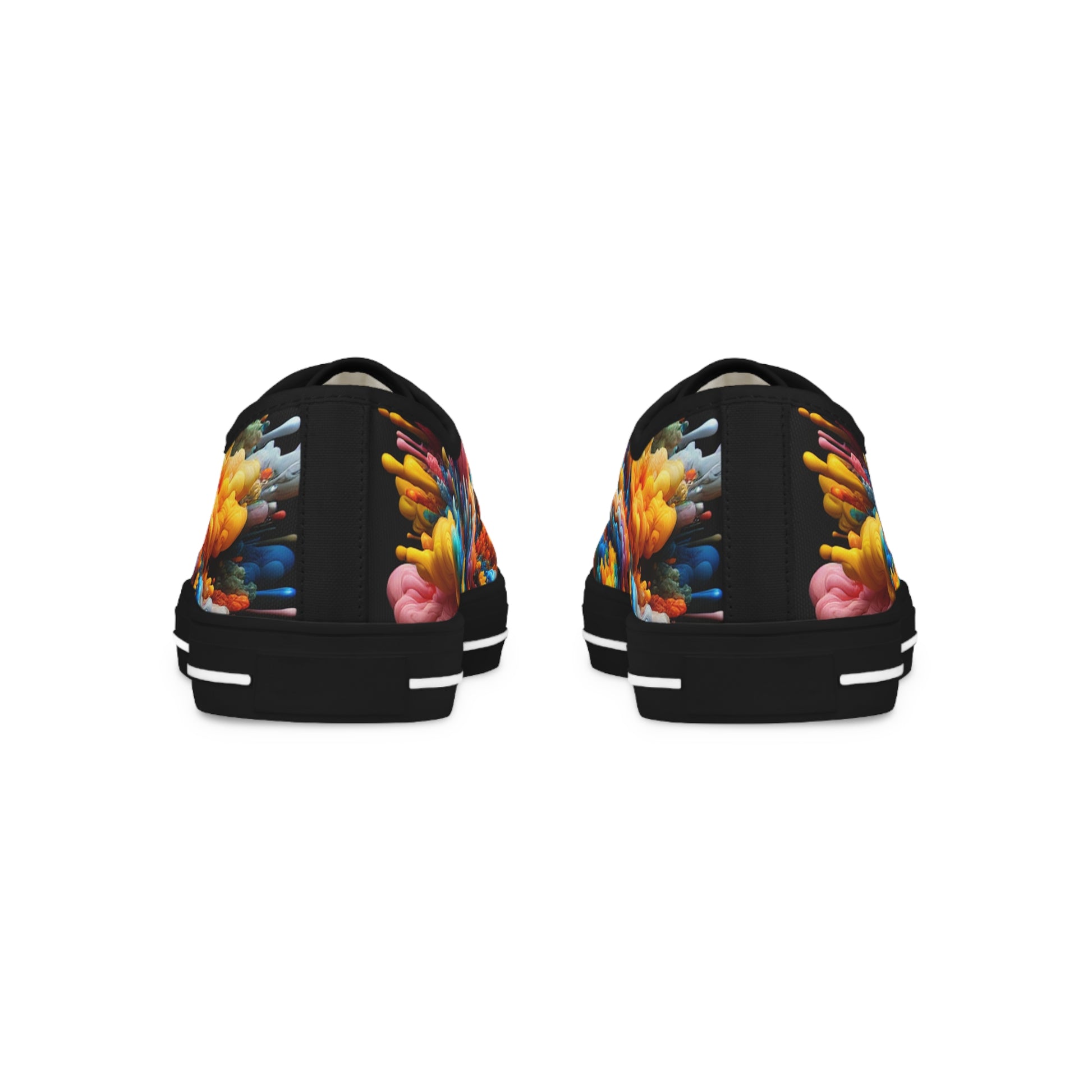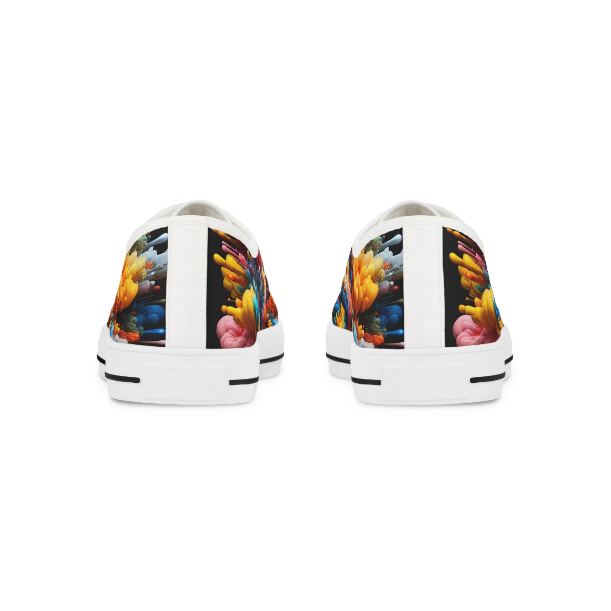 Explore your vibrant side with our low top sneakers that seamlessly blend orange, blue, pink, yellow, and green into a daring camouflage pattern. An unconventional color explosion that retains the true essence of camouflage, yet stands out! | Unisex Digital Design