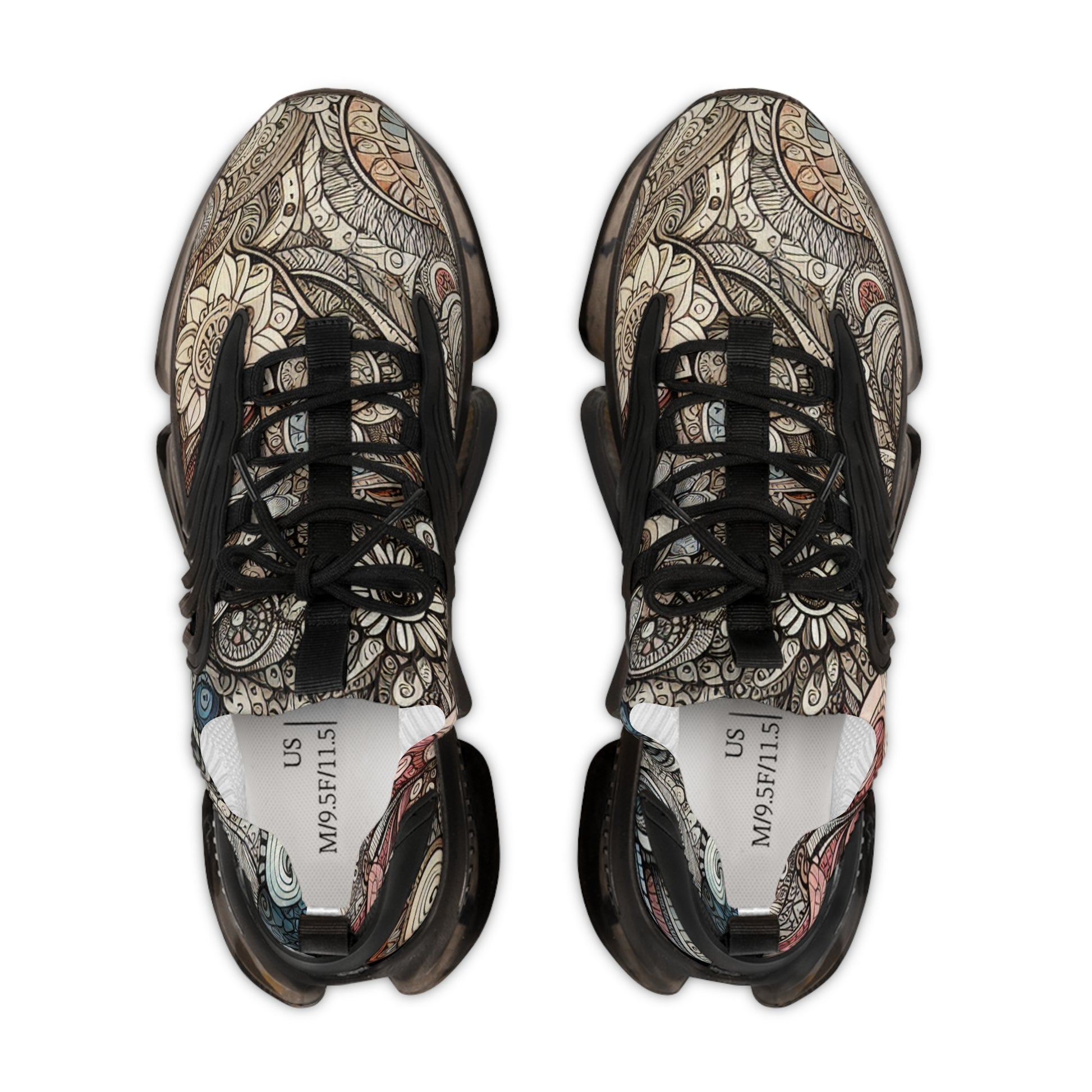 Experience comfort and style in our Mesh Doodle Sneakers! Boasting an intricate pattern inspired by a doodler's notebook, our sneakers are a tapestry of artistic expression. Flowers, geometrics, and abstract elements are intertwined on a subtly tinted canvas, with hues ranging from soft pastels to rich earth tones. Definitely the perfect footwear for the bold and creative spirit! | Unisex Digital Design