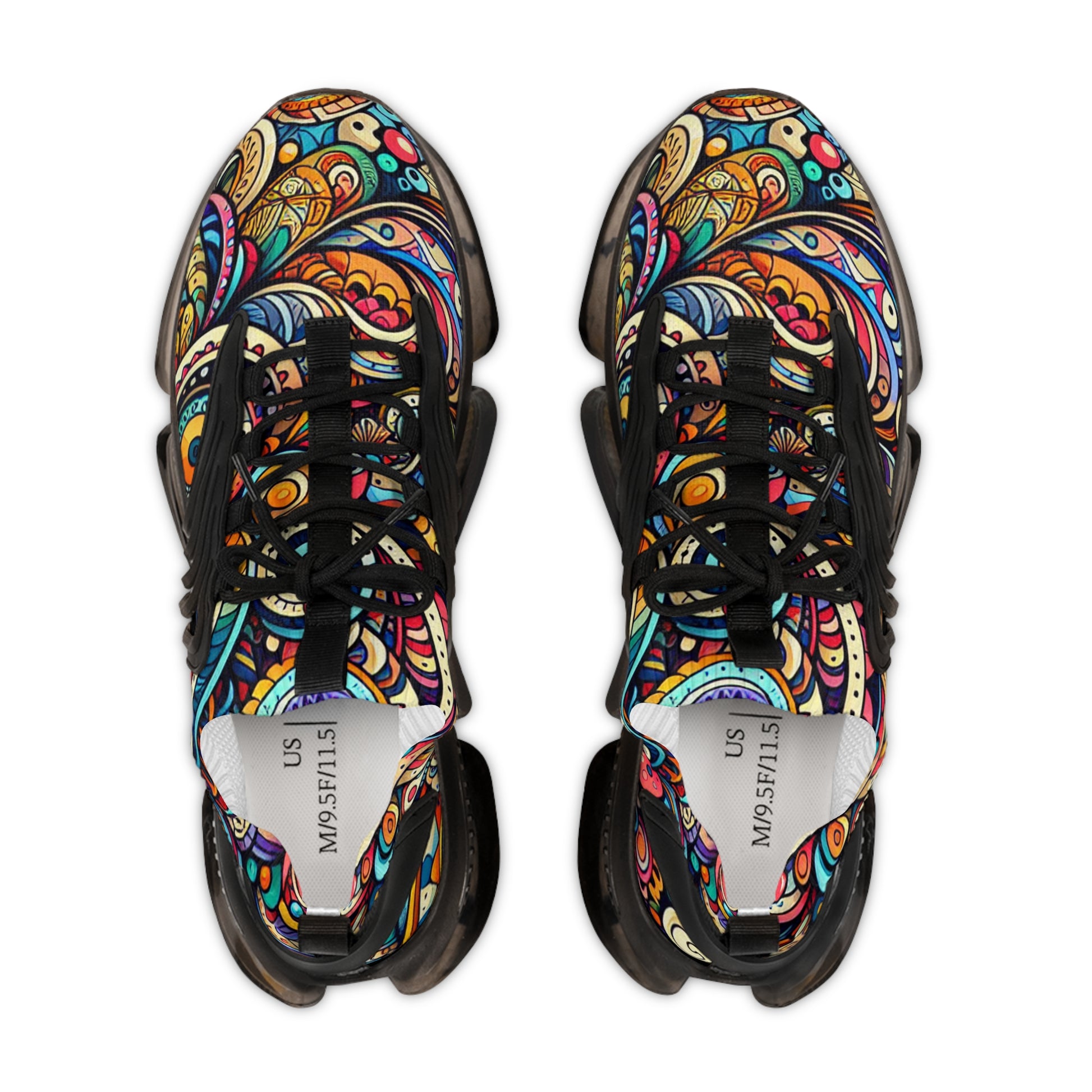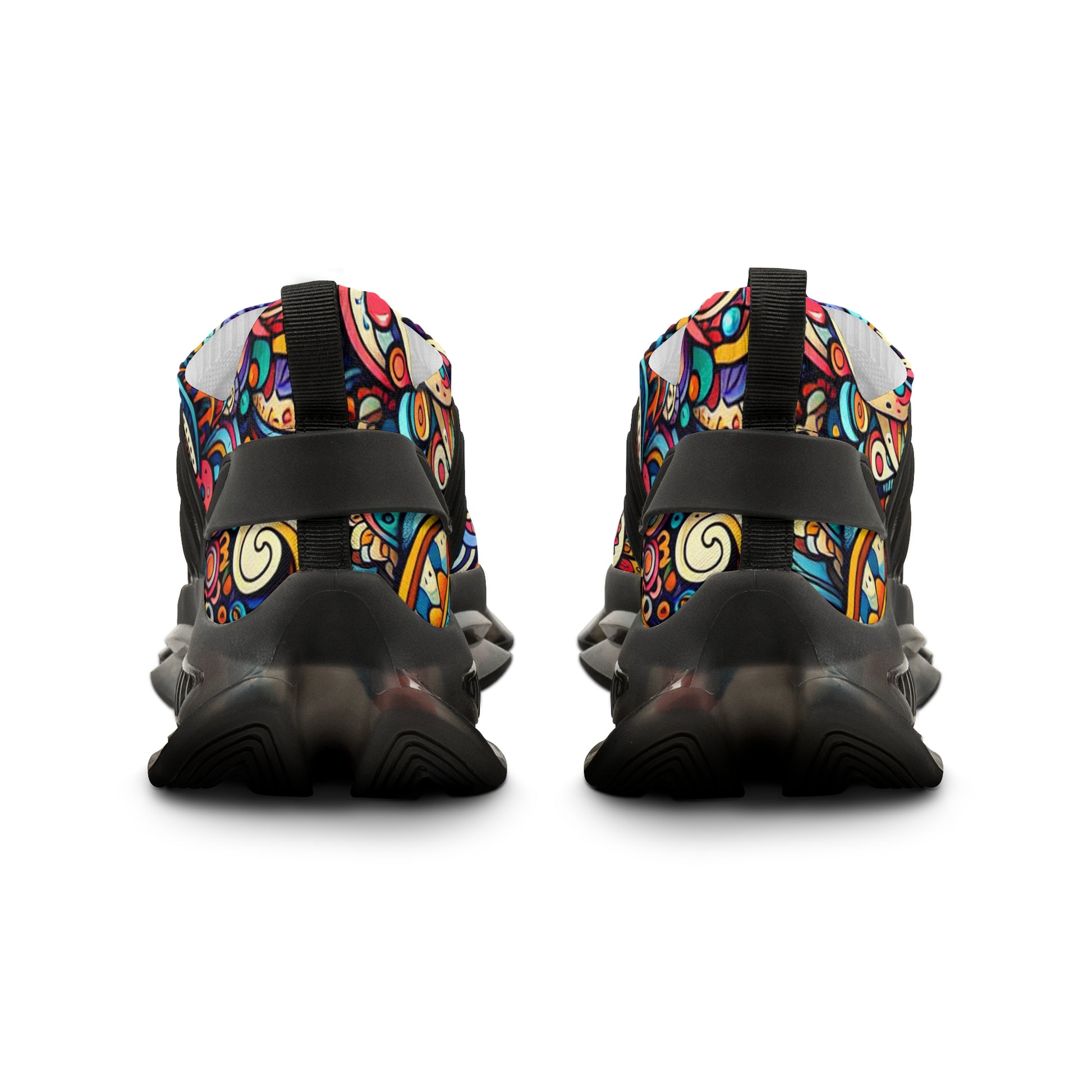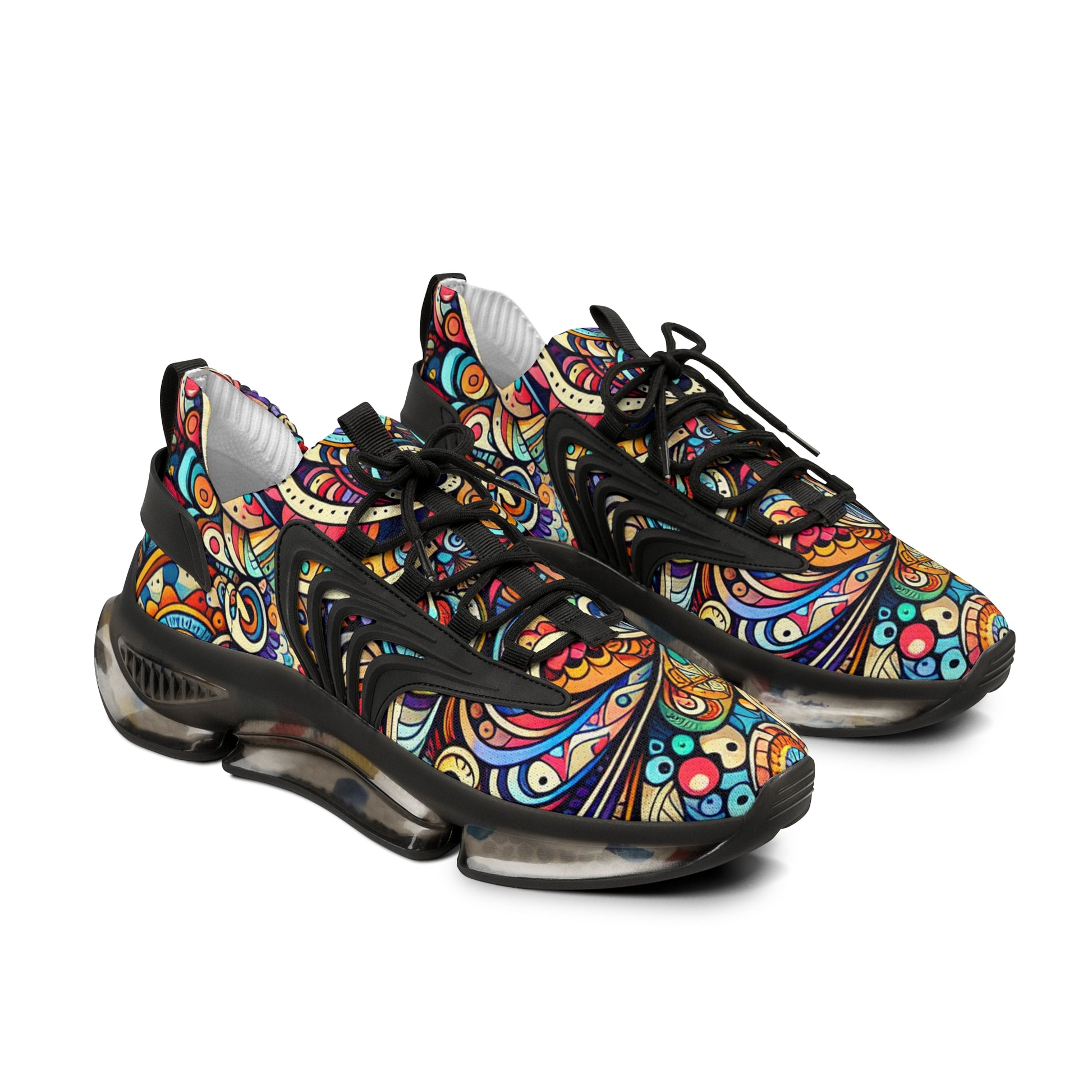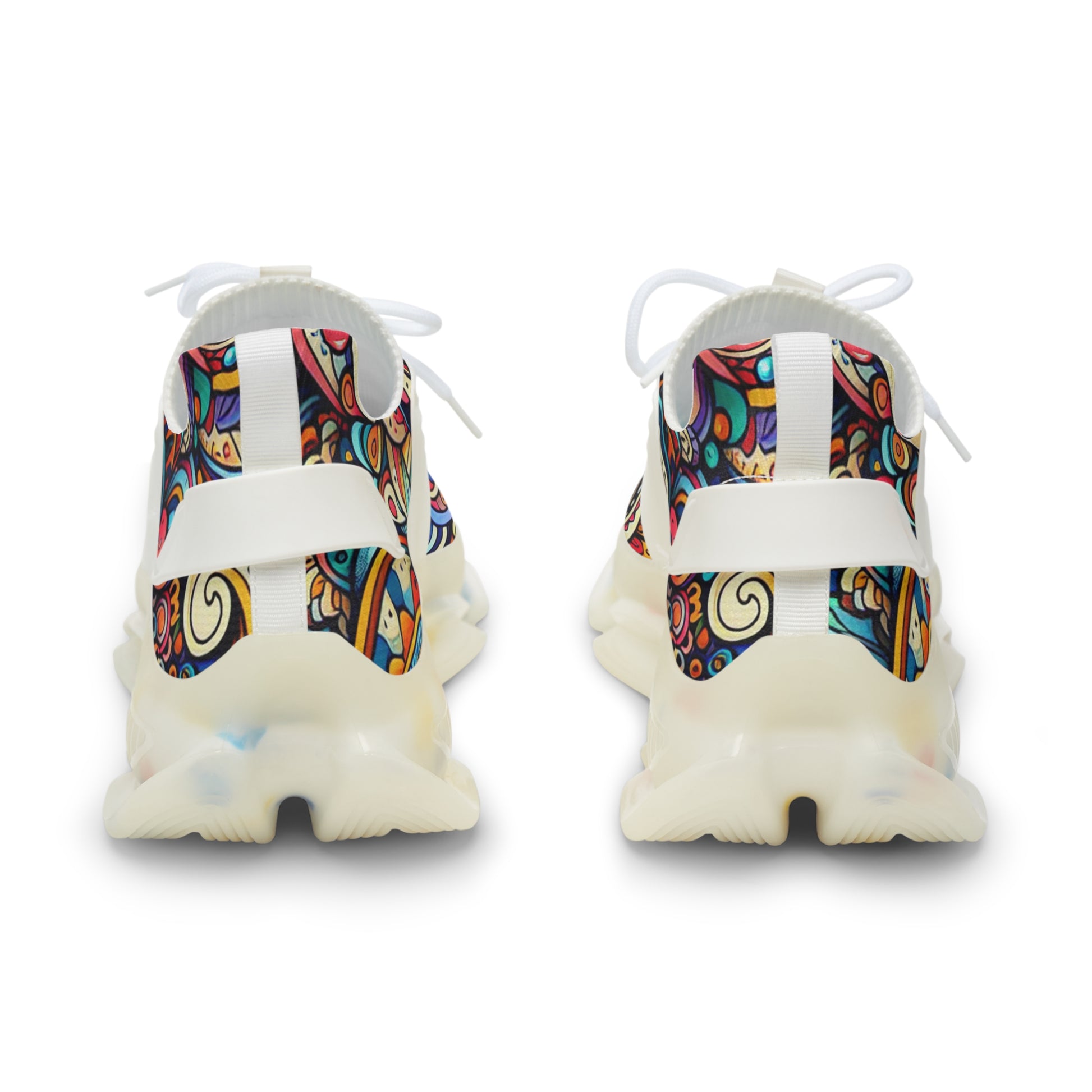 #MeshSneakers #DoodleArt #VibrantColors #IntricateDesigns #PlayfulFashion #ChicFootwear #AbstractMotifs #Craftsmanship #SneakerLove