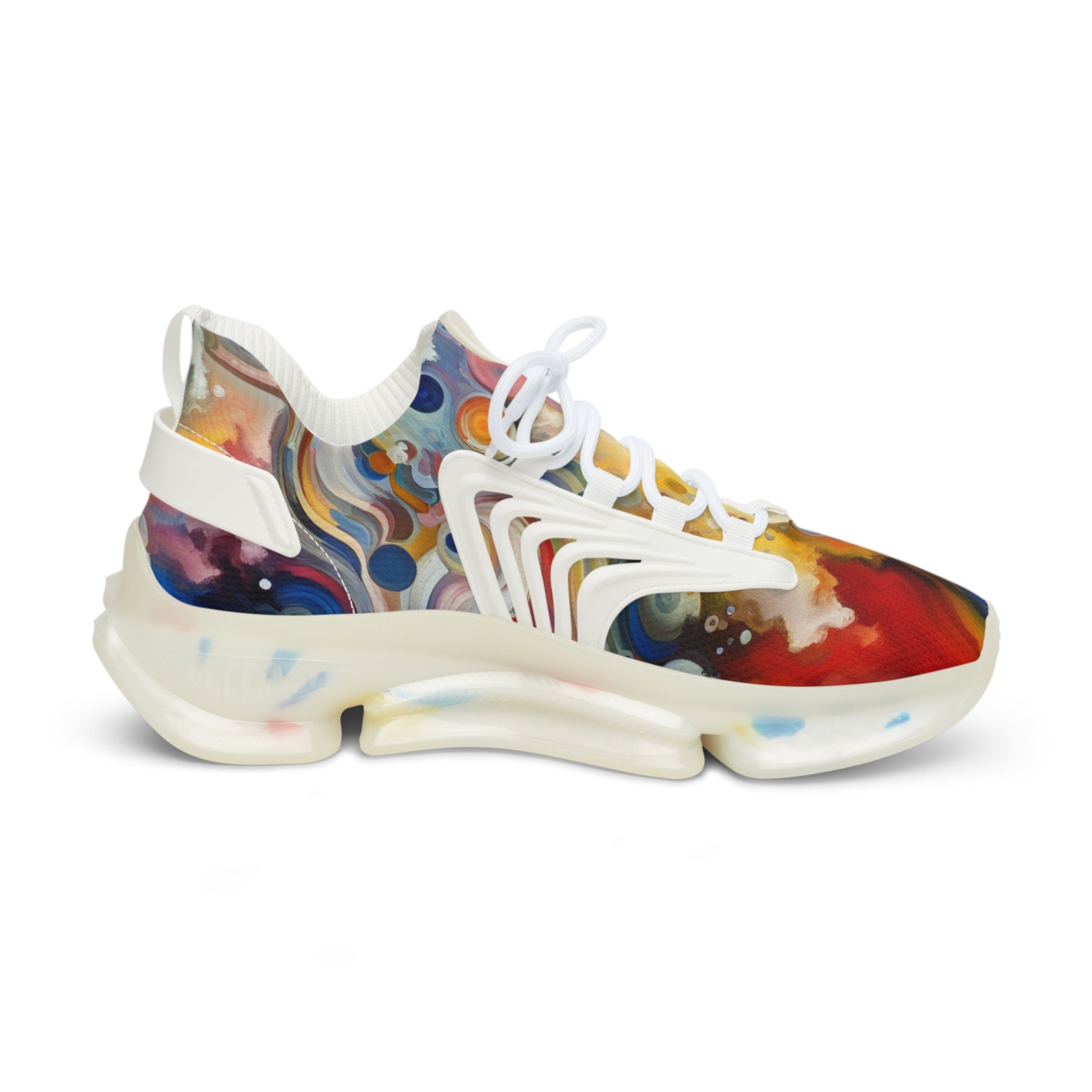 Unleash your steps with our Mesh Sneakers, adorned with abstract art inspired by early 20th-century expressionists. Vibrant colors and bold forms blend, creating a dreamlike spectacle that emphasizes emotion above representation. The comfort and design are harmoniously painted like a surreal oil-painting casually adorning your feet. | Unisex Digital Design #AbstractArt #ExpressionistInspired #MeshSneakers #BoldColors #DreamlikeDesign #FashionMeetsArt #ComfortAndStyle #ArtisticFootwear #VibrantSneakers #ContemporaryFashion
