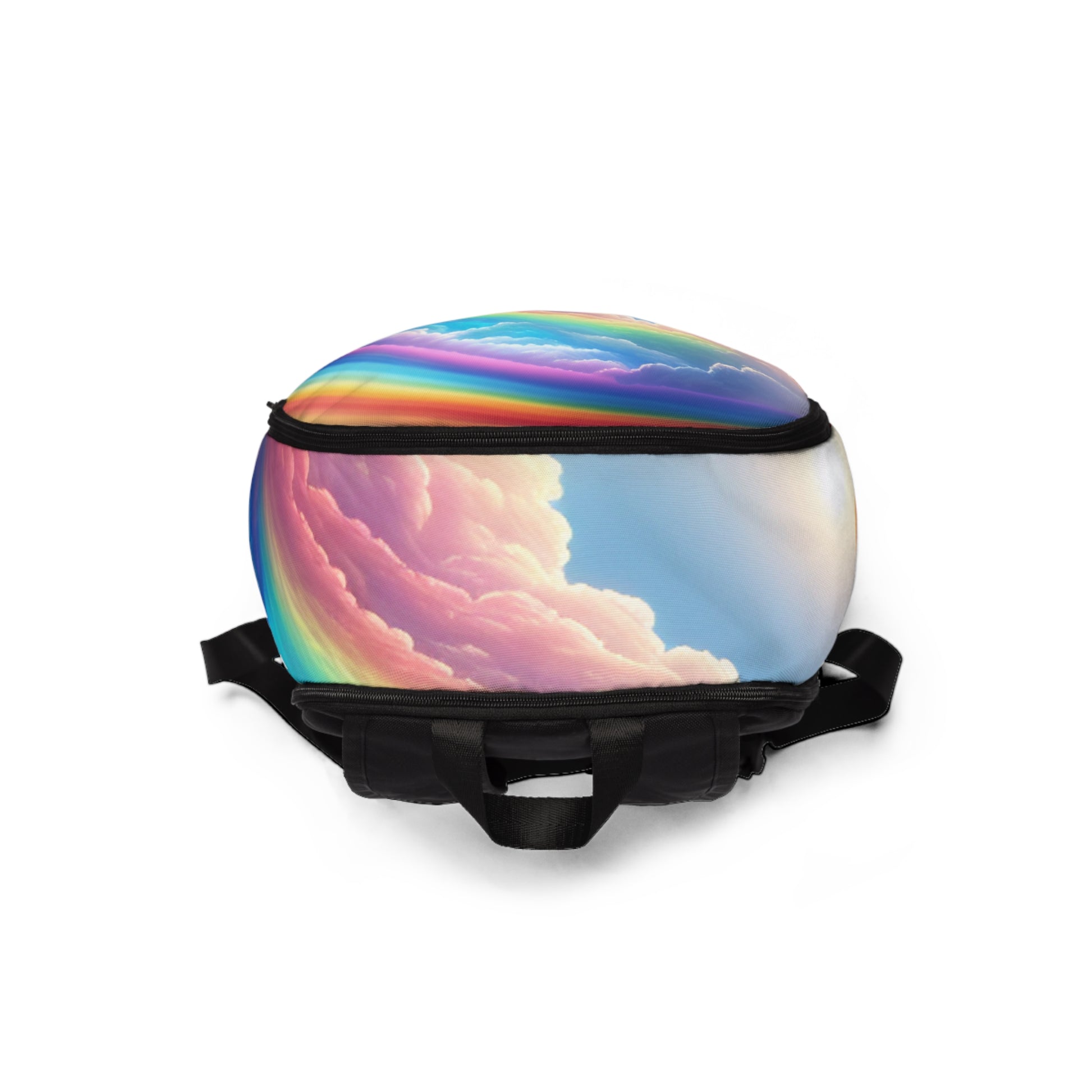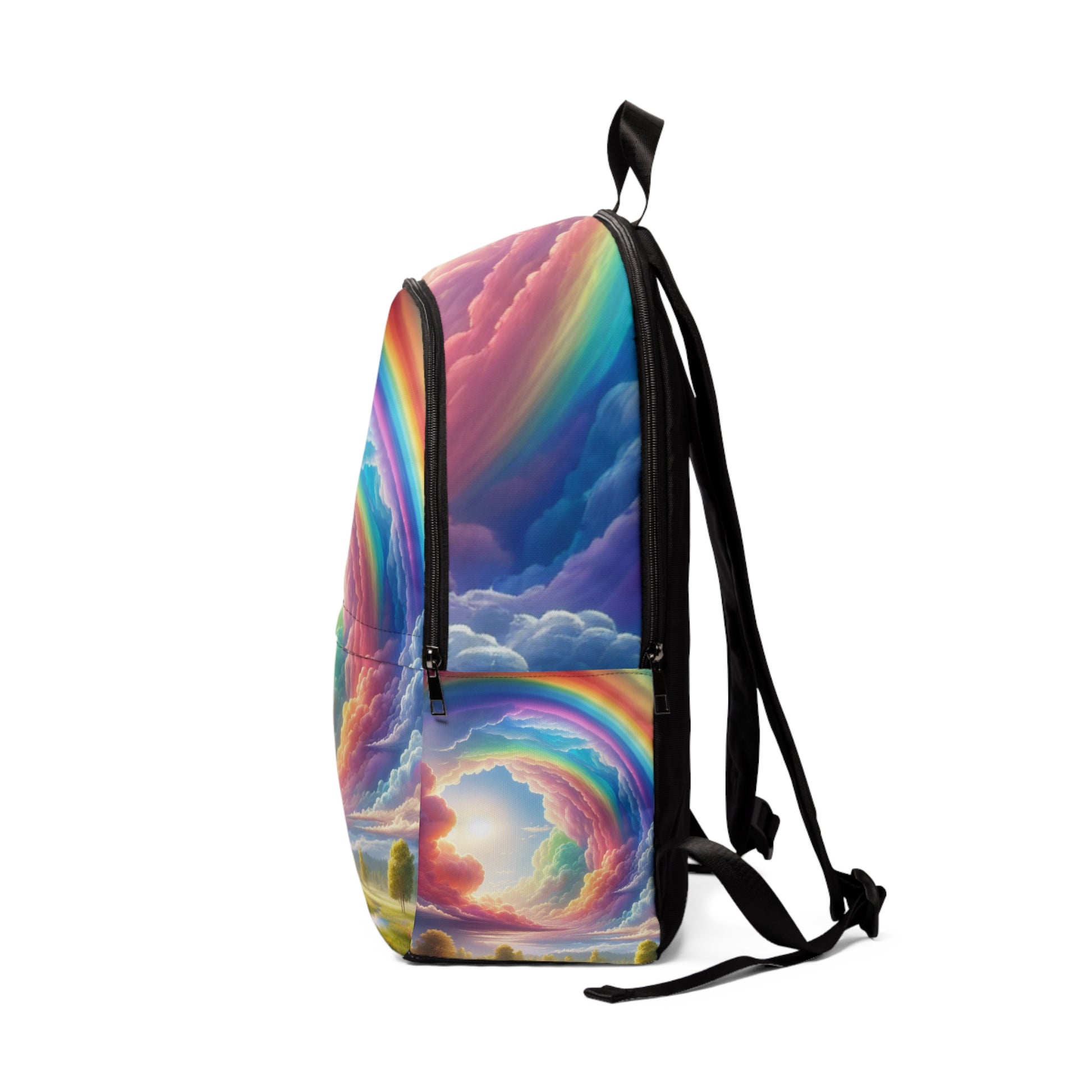 Discover the world with our Rainbow Nature Scene Backpack, graced with a stunning outdoor panorama. Reflecting an ethereal rainbow after a fresh rain, this bag personifies nature's resilience & beauty. Enjoy comfort and spaciousness in a whimsically vibrant package. | Digital Design #RainbowBackpack #NatureInspired #EcoFriendly #TravelEssential #OutdoorGear #ColorfulDesign #ComfortableBackpack #SpaciousBag #TravelInStyle #FashionMeetsFunction